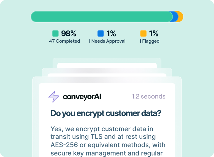 Conveyor goes beyond what the typical RFP automation software platform can do and also automates security questionnaires and provides one-click access to security and compliance documentation through a hosted trust center.