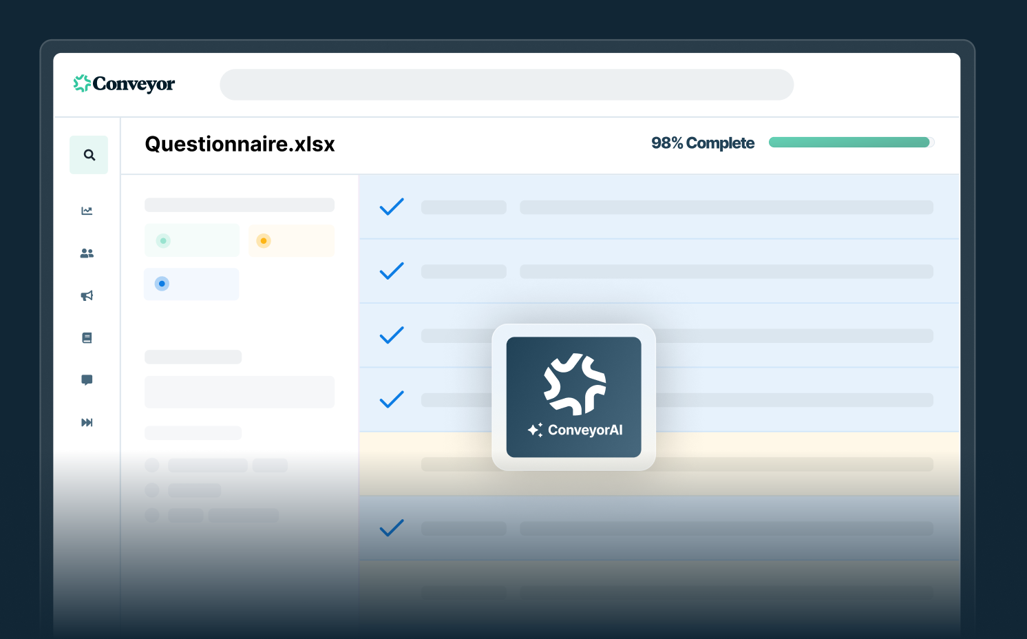 “We got the time spent per question from 4 minutes down to 22 seconds which reflected a 91% reduction in time spent on questionnaires. If we lost Conveyor, it would grind security to a halt.”