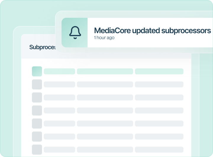 No more manual notifications when you add subprocessors, update your SOC 2, or have a response to a breach.