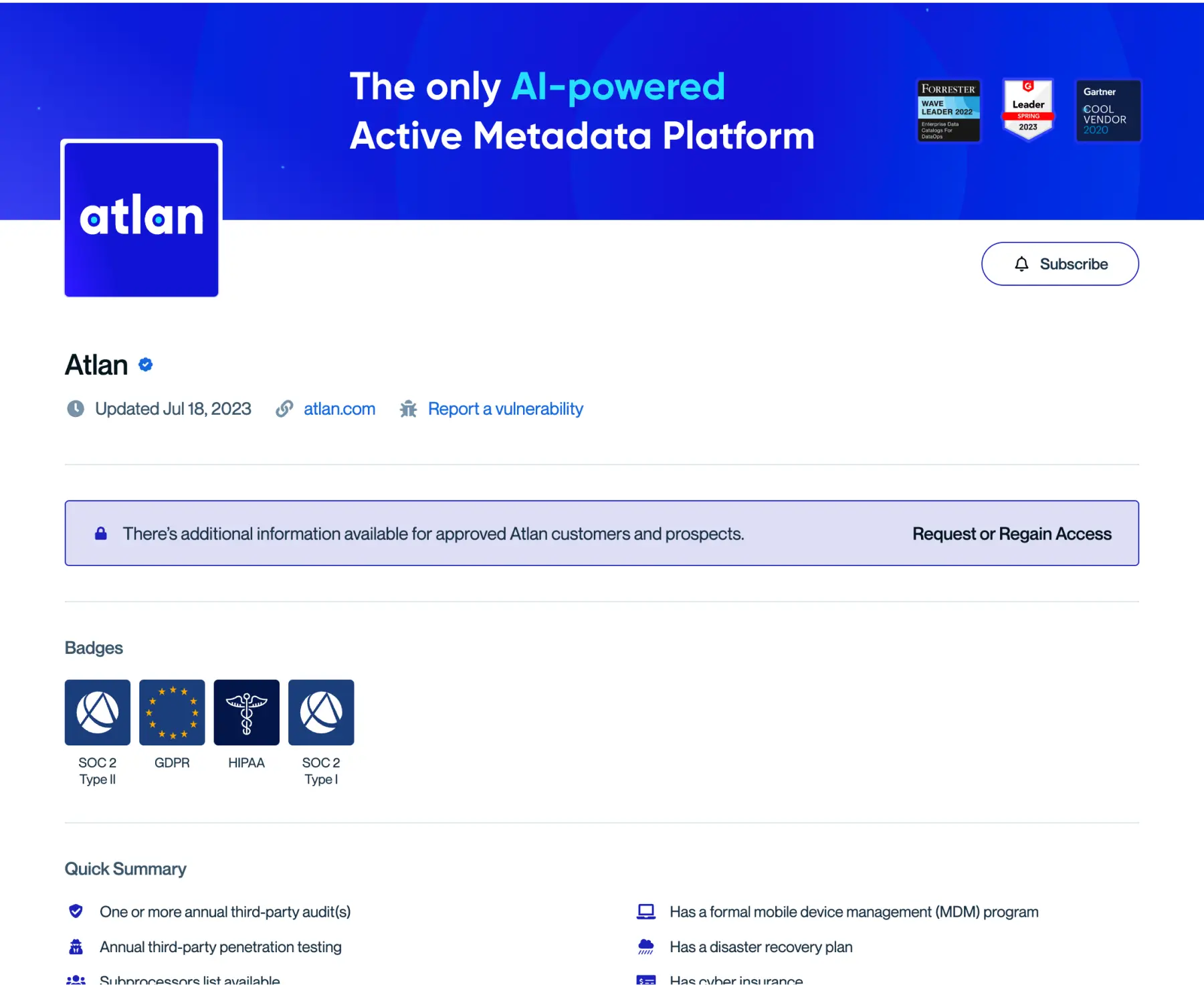 Browse through some of our customers’ trust centers. See how they’re using Conveyor to dramatically reduce manual security effort.